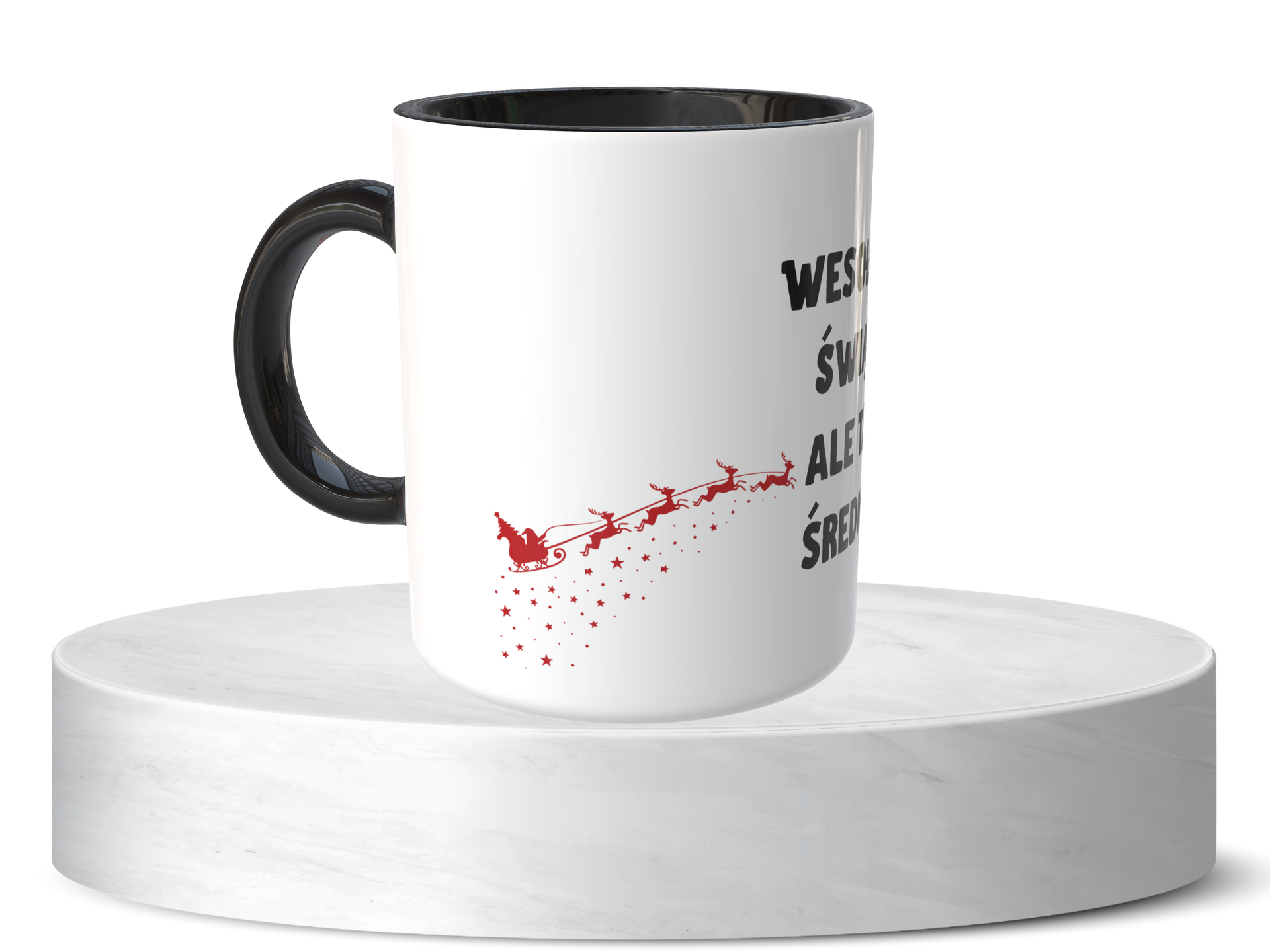 Ten kubek nie rozwiąże wszystkich spraw, ale poprawi humor od pierwszego łyka. Idealny, gdy potrzebujesz małej przerwy i dużej kawy. Klasyk, który mówi: spokojnie, damy radę. Świąteczny Kubek na Święta – Wesołych Świąt, ale tak średnio pasuje jak ulał.